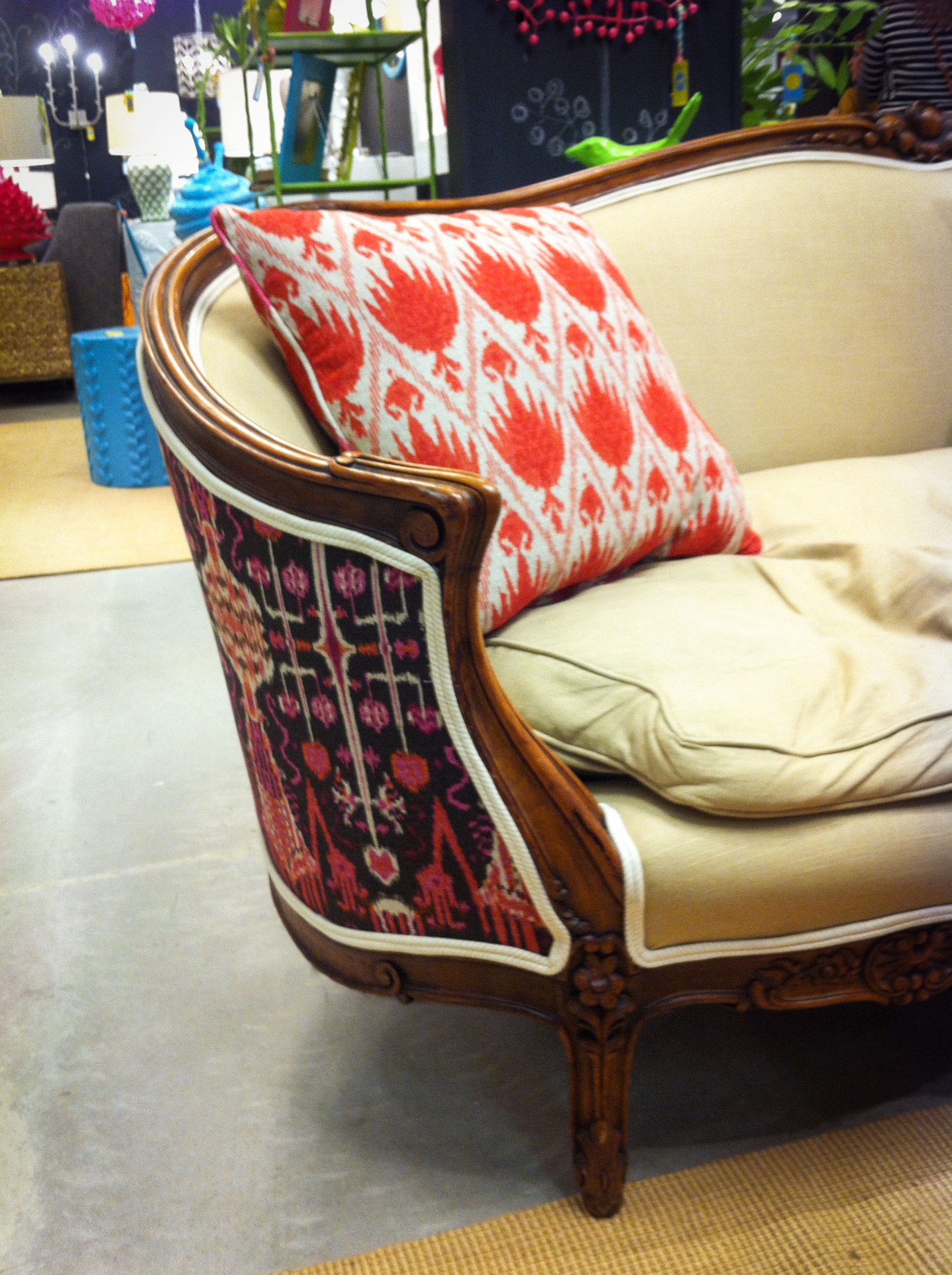 Mixed fabric upholstery was everywhere, from traditional to modern, bold to subdue. Dark brown leather on chair arms was paired with a nubby linen seat, or a bright print on a chair back was mixed with a solid on the front. Historically this is nothing new, but it’s nice to see it coming back. Why settle with one fabric when you can have two (or more)? The trend also lends a designer, tailored look.