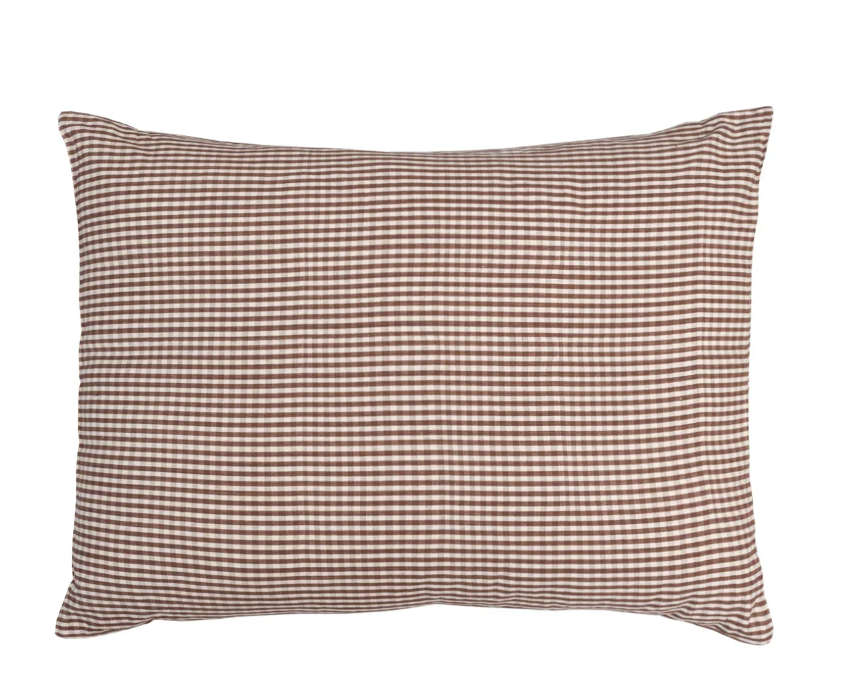 Crafted from 100% cotton and hand-dyed for depth of colour, this cushion features a brown gingham pattern and envelope closure. Finished with a plush down feather insert, it’s an effortless spring–summer refresh with enduring charm.
