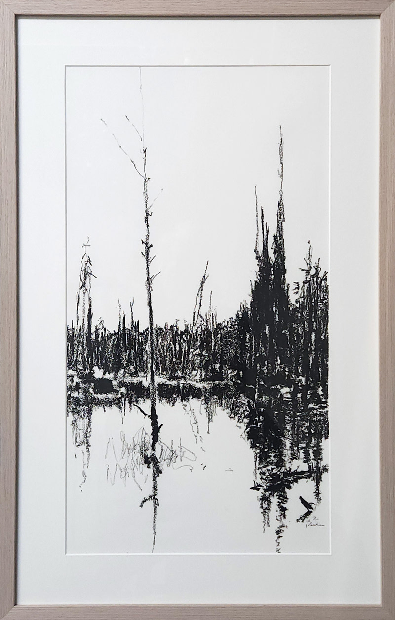 Aspens by local artist Maria Josenhans. Oil on pastel paper drawing. One of a kind original drawing on archival museum paper with a museum mat. Professionally framed in a simple black wooden frame.