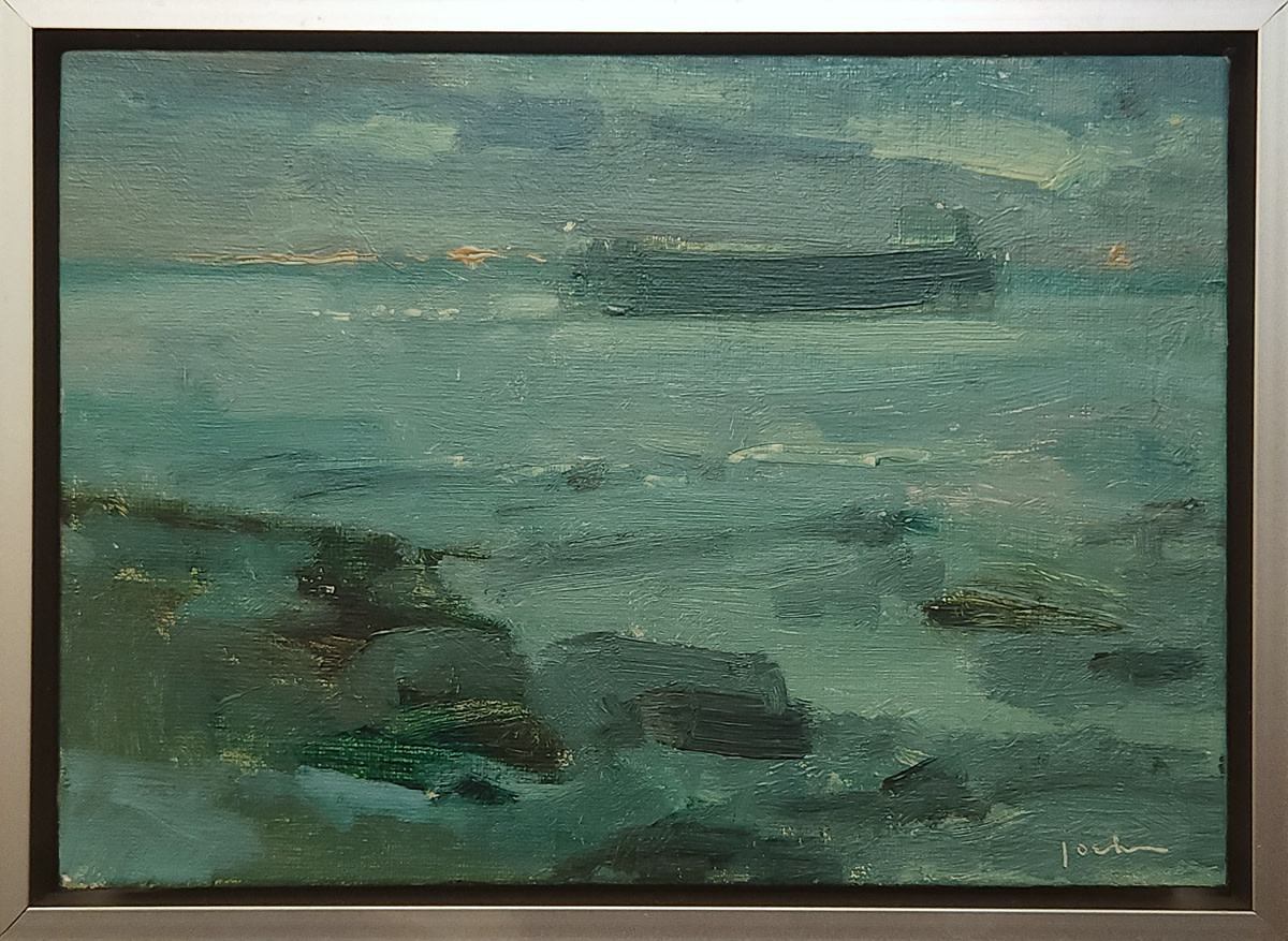 Bamfield Log Jumble by local artist Maria Josenhans. Original oil on linen. Professionally framed in a vintage style silver frame.