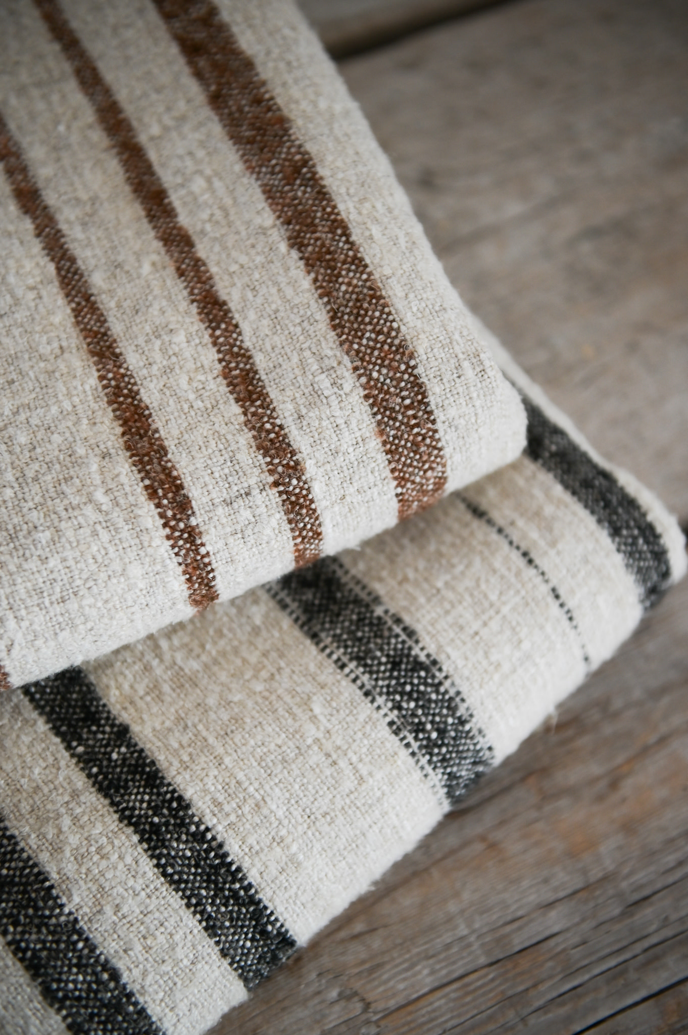 Masterfully woven in Belgium, Nate is a celebration of natural beauty and refined craftsmanship. A Belgian linen warp is paired with alternating linen and mixed-fiber wefts, creating a subtle stripe that shifts in texture and tone. 79" x 55".