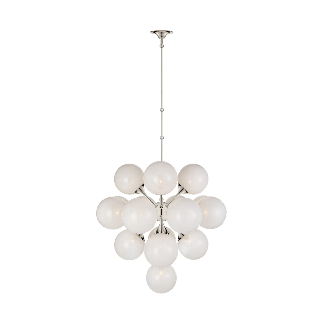 Large: Overall Height: 62", Fixture Height: 33", Min. Custom Height: 53", Width: 33.25", Canopy: 6" round, Socket: 17 - E12 Candelabra