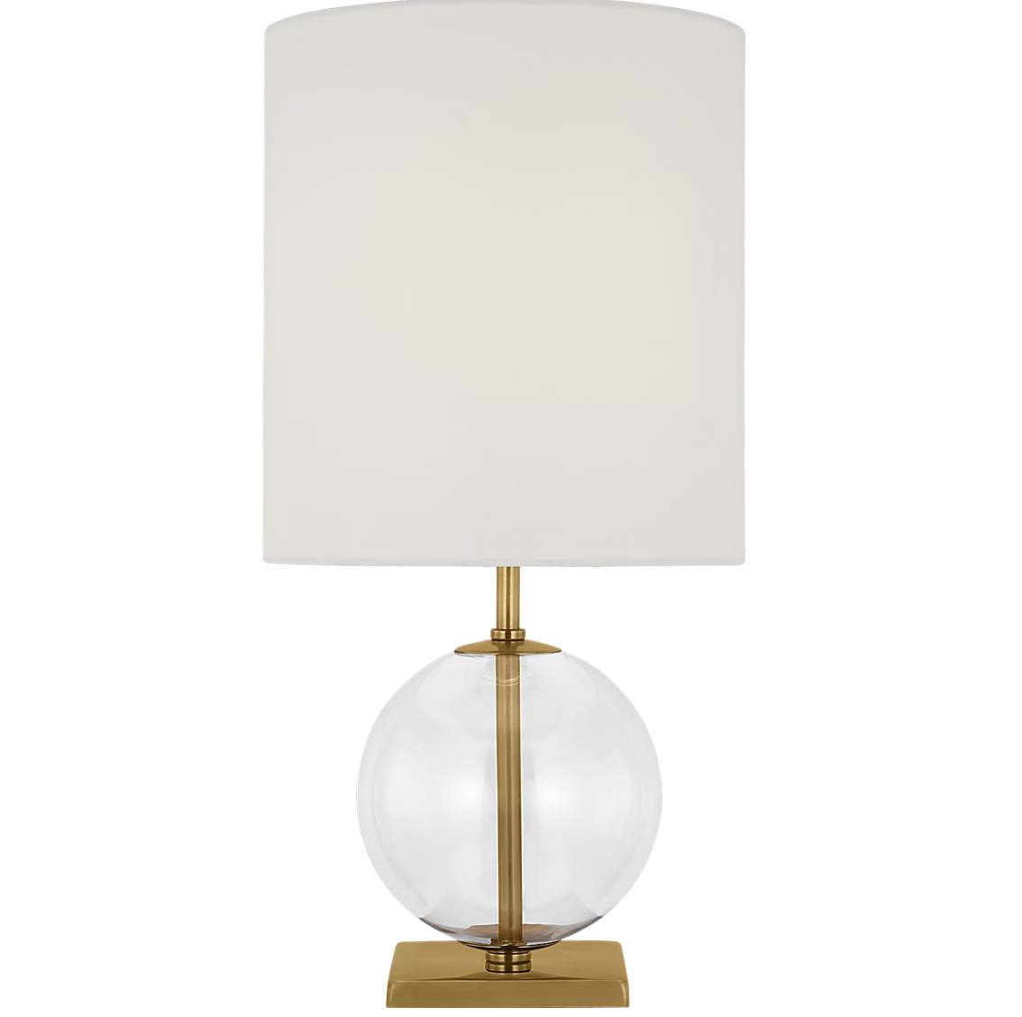 Hackney Table Lamp with linen shade, available in hand-rubbed antique brass, bronze, or polished nickel finish. Designed by Randall J. Powers for Visual Comfort. Switch on cord.