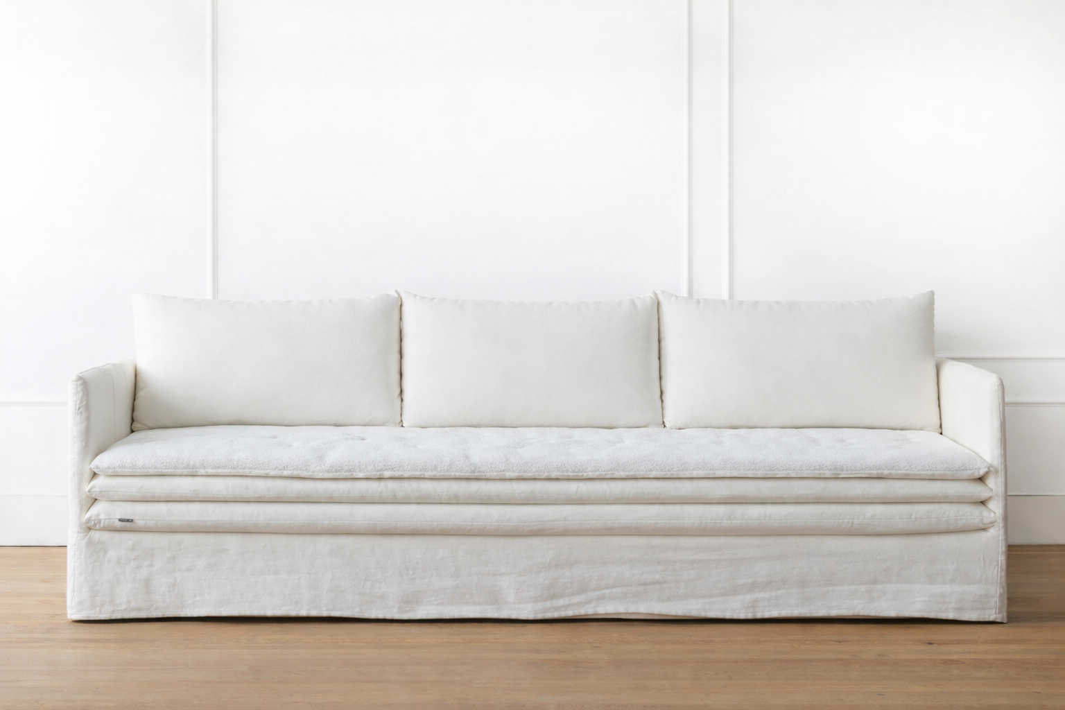 The John Derian Field bench oozes elegance. Available as a backless bench, a bench with back, and ottoman. Gorgeous tufting details, 8-way hand-tied coil spring seat.