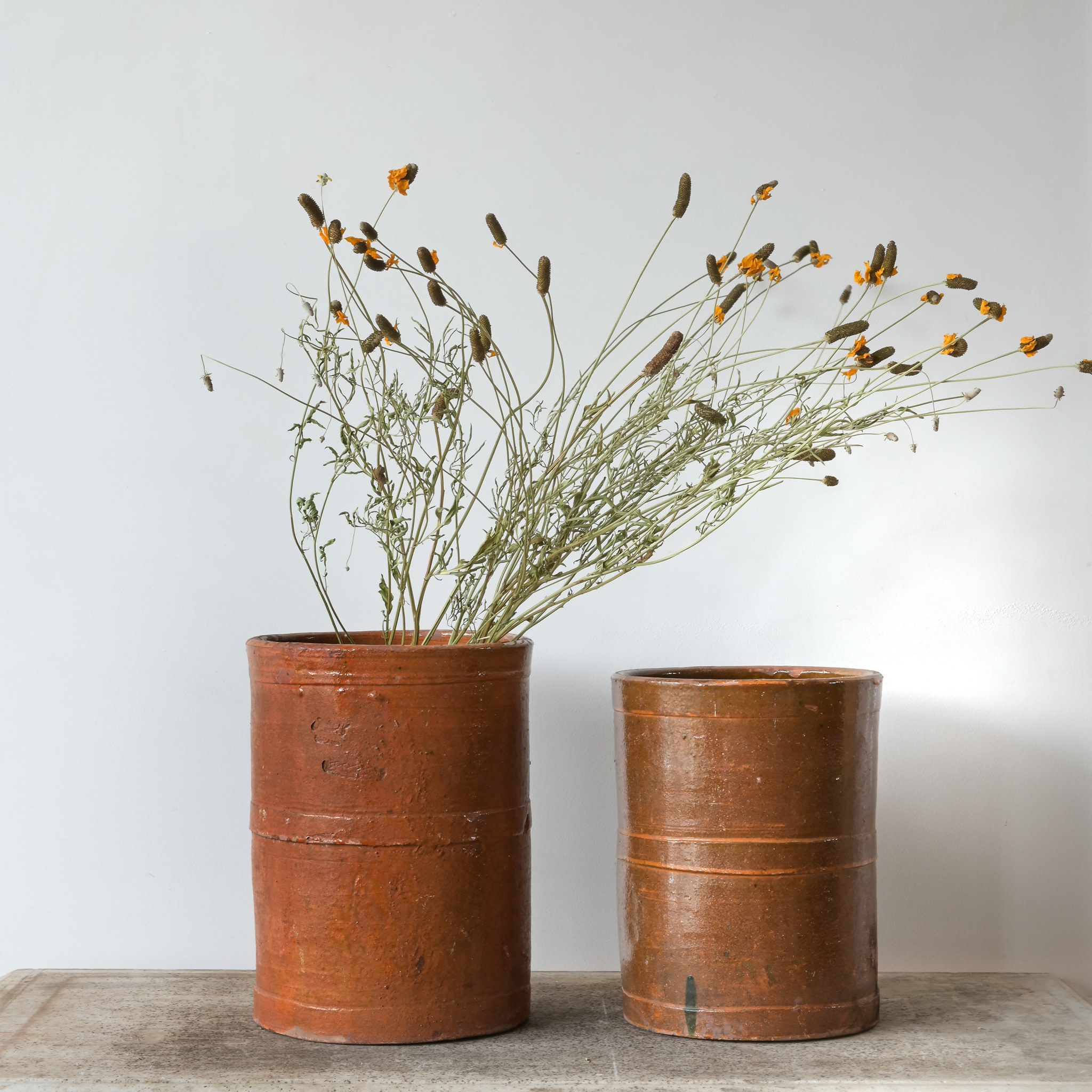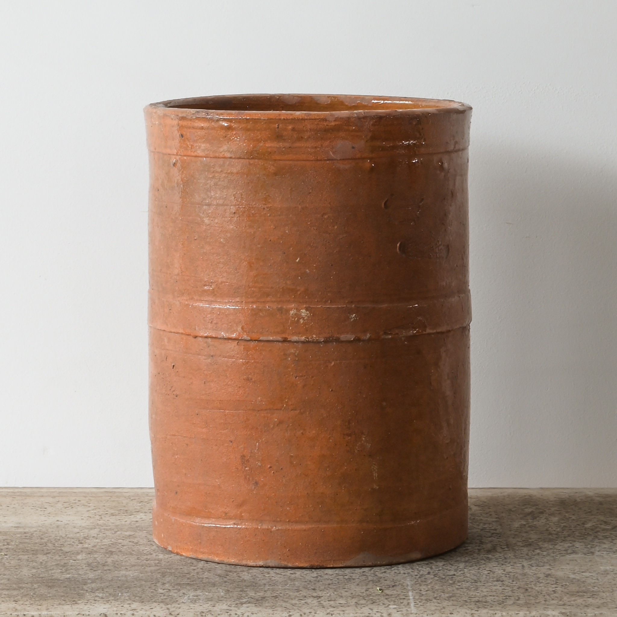 Hand-blown in France during the 1700s, this antique marron glass jar embodies the rich Burgundian glassmaking tradition. Its deep, lustrous colour and organic form make it a striking decorative object with centuries of history.