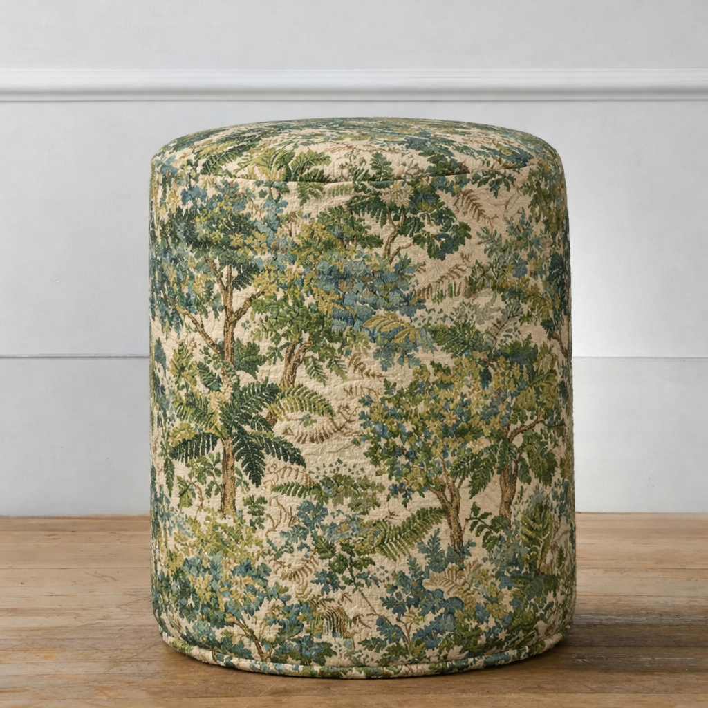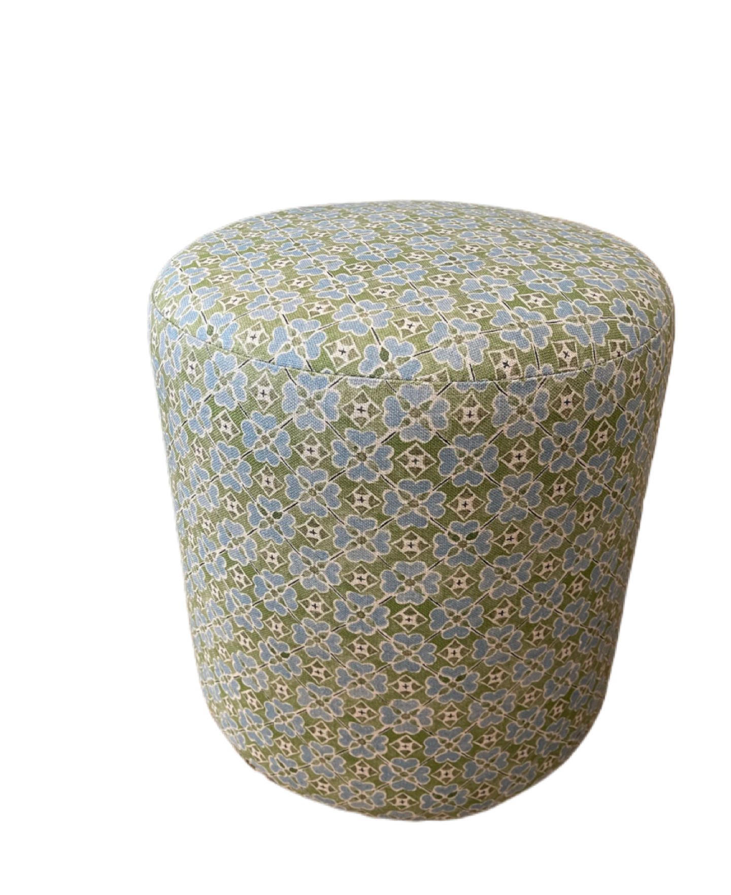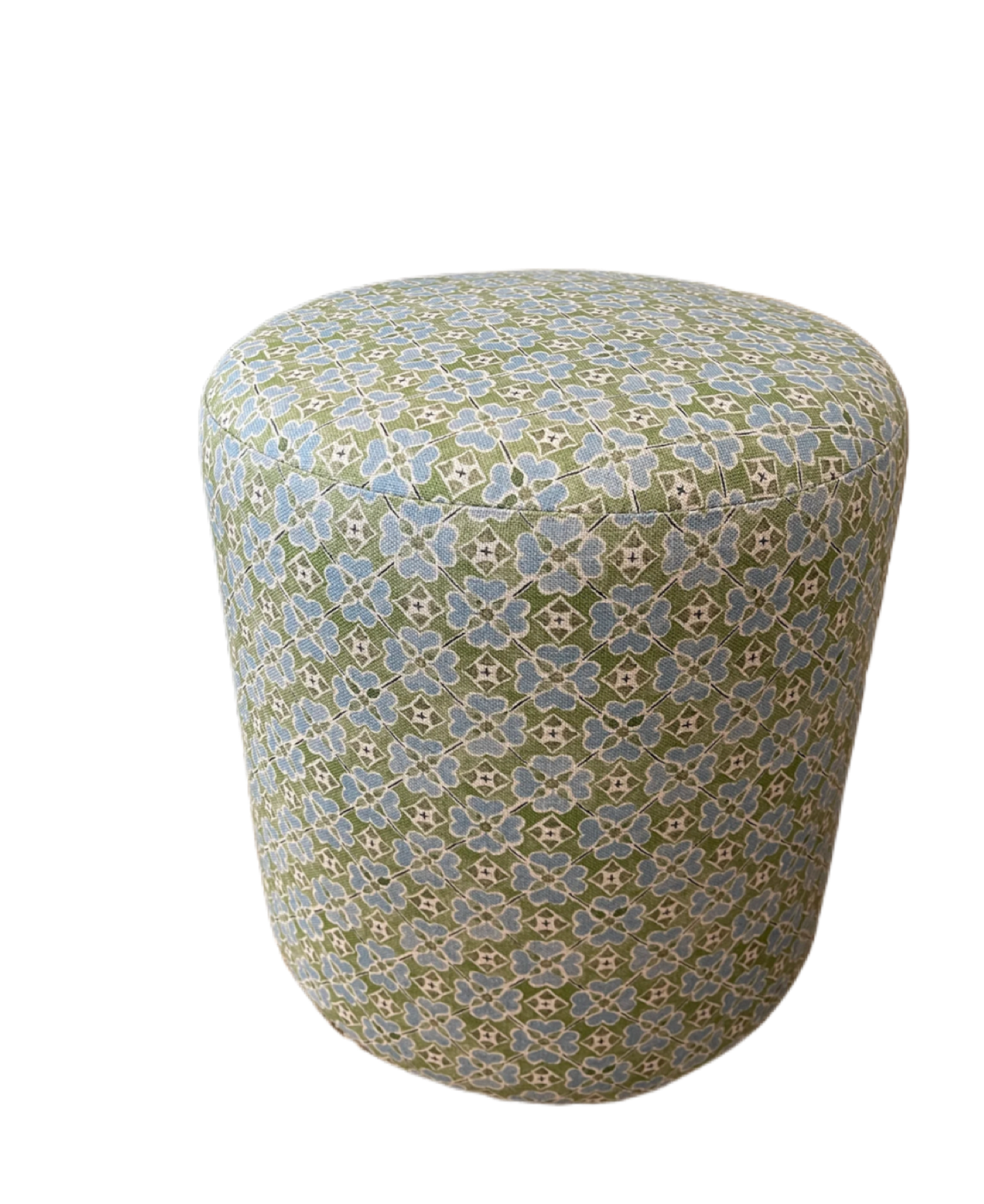 The little brother to our bestselling Ella Stool, the George Footstool by Gild & Co. has a playful floral design and perfect petite size. Expertly crafted in solid wood with bun feet. Seen here in a chic charcoal and white woven cotton stripe fabric.