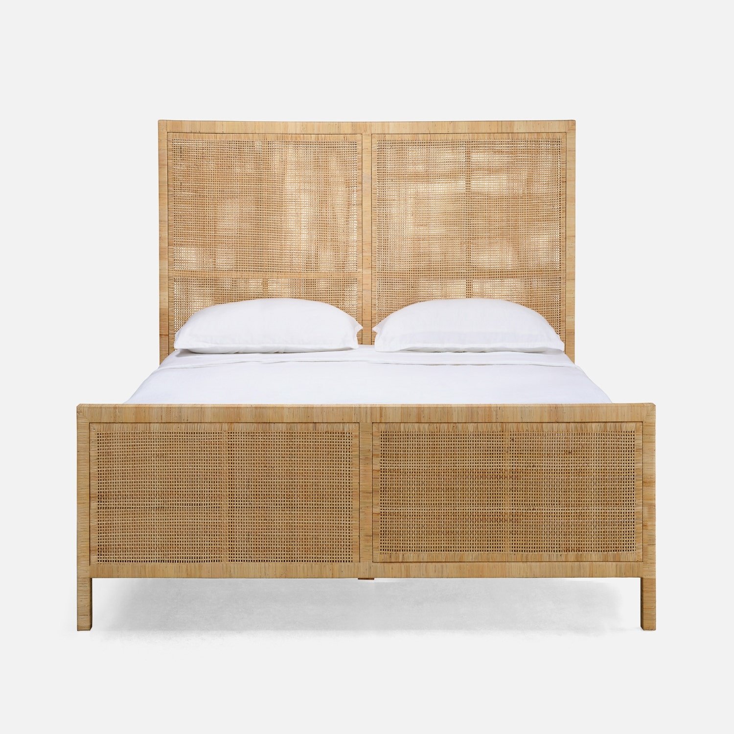 • The Isla bed frame is crafted from strong, peeled rattan, handwoven into an all-over crisscross pattern. Neutral finishes and naturally occurring knob variations give the line a light and organic look.