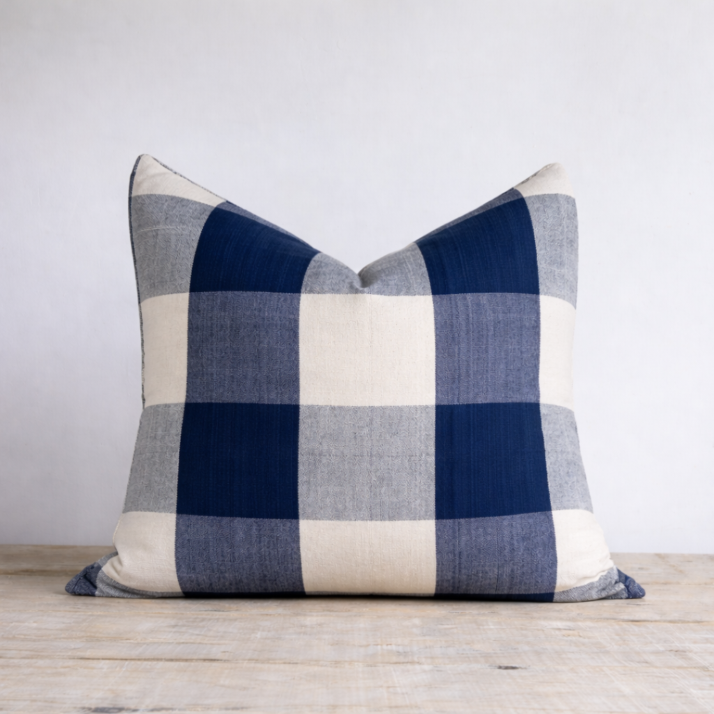 Natural, eco-friendly 100% jute woven area rug with indigo or black ticking stripes. Handmade and durable for high-traffic spaces. Perfect for living rooms, bedrooms, and hallways – complements coastal interiors. Farmhouse style.