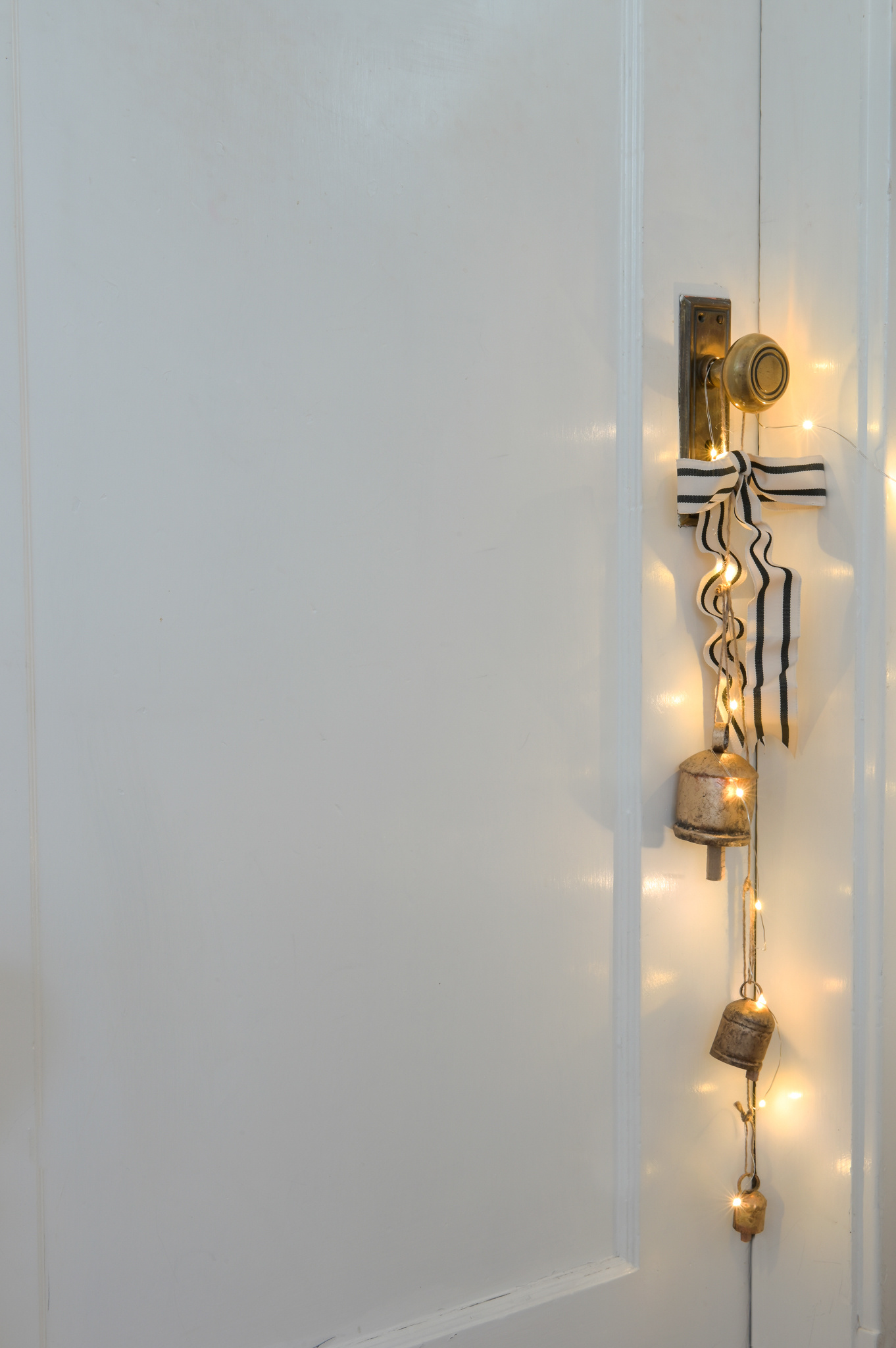 • A strand of nine medium vintage style brass Noah bells. Put them on the door, wreath, mantle or let your festive creative juices flow.