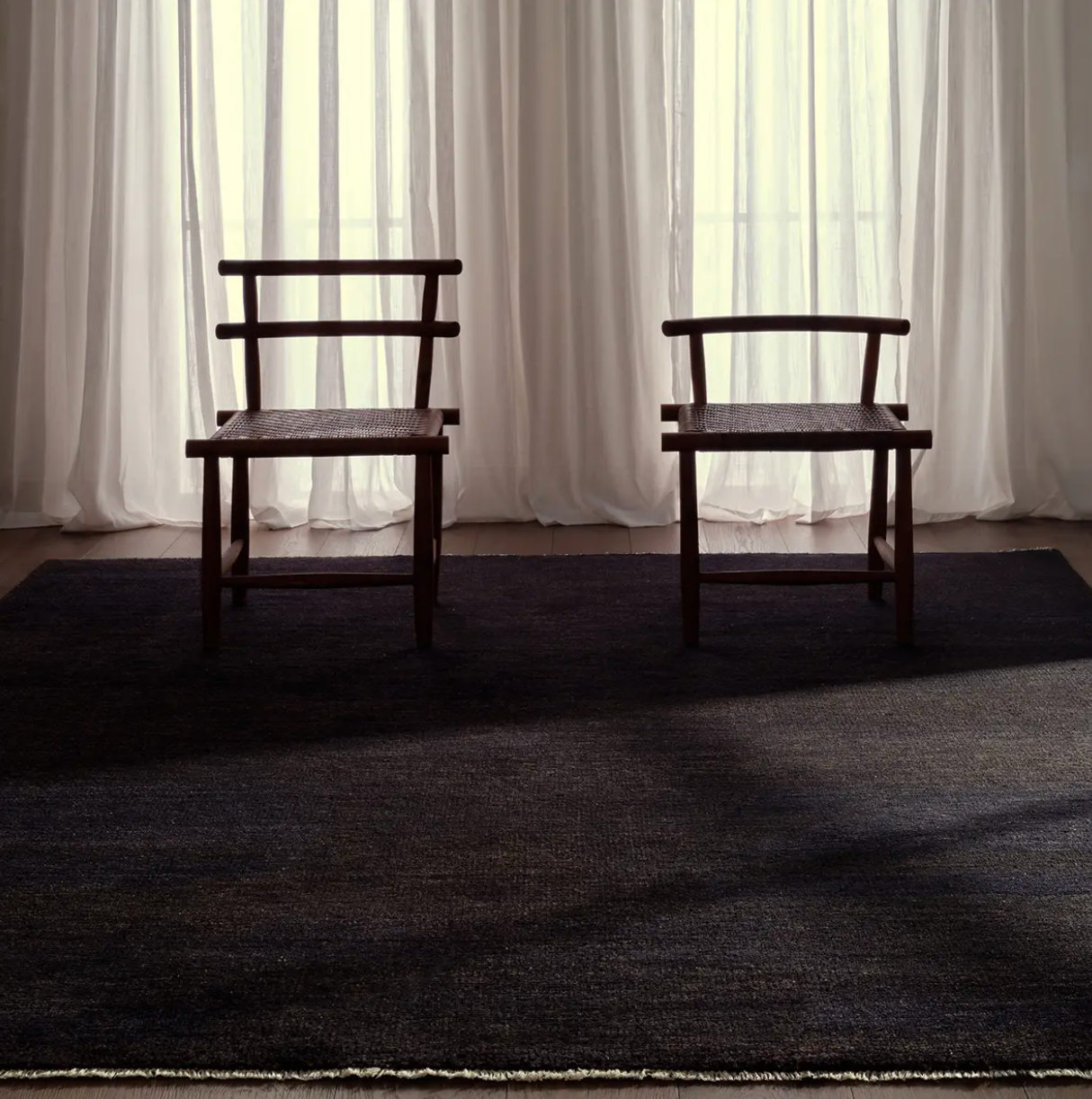 The sophisticated Saga collection lends balance and a relaxed, grounding vibe to modern interiors. The Origin area rug anchors a space with a solid, subtly striated design. 3' x 12' Stormy runner in stock.