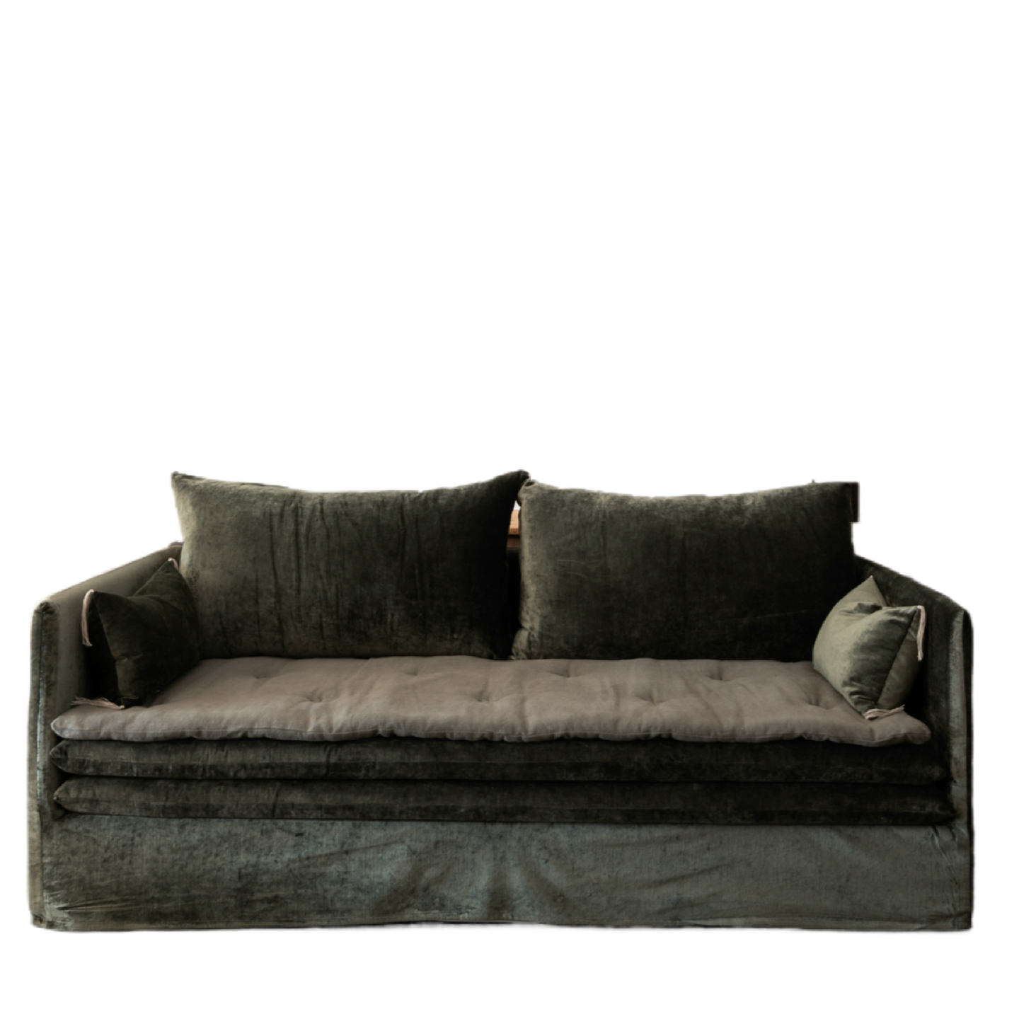 The Endless Nights loveseat by Paris-based Bérengère Leroy embodies effortless French elegance. Shown here in a 100% linen slipcover. Available in choice of fabric(s) and size. In stock and available now.