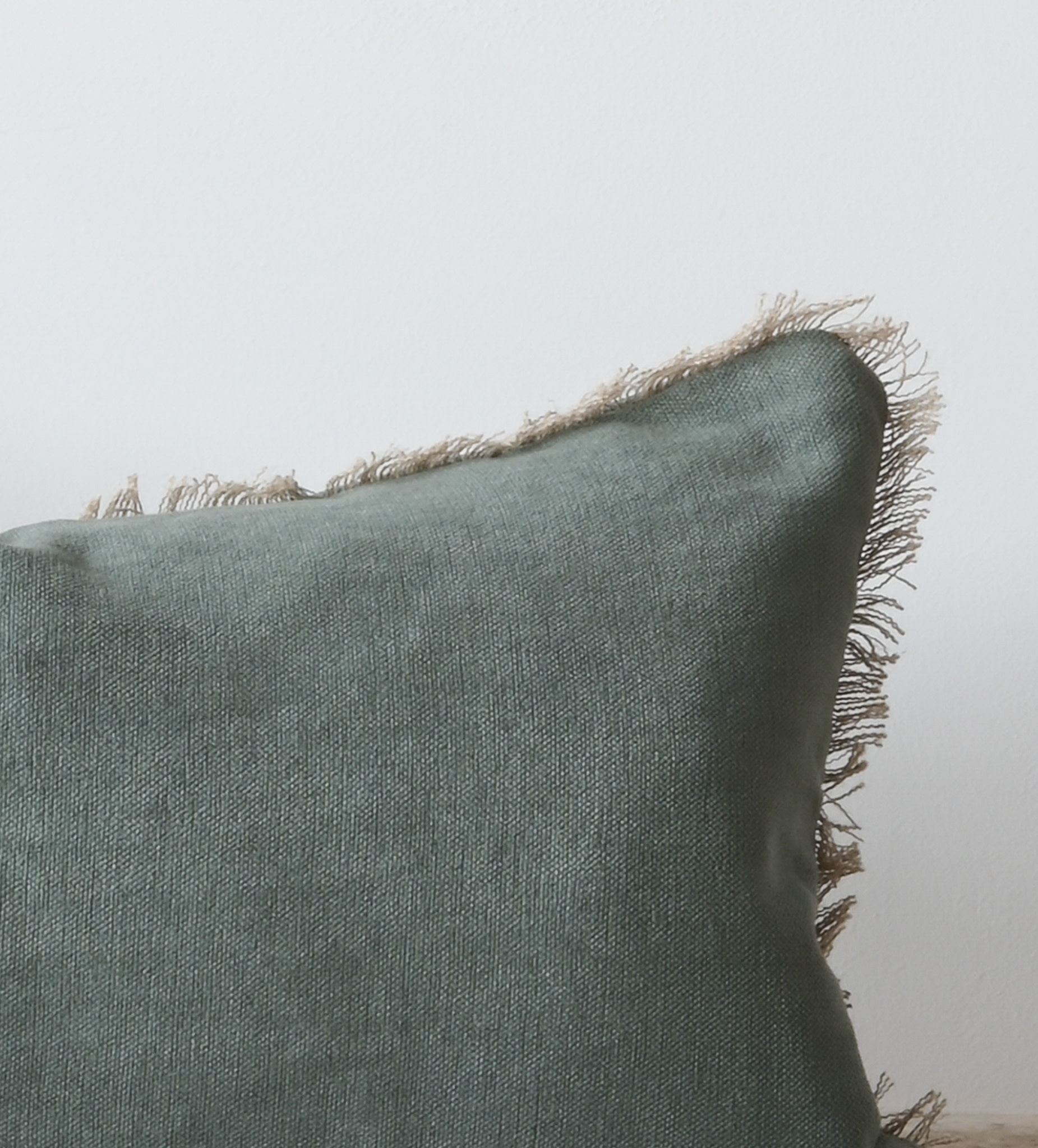 Verone is a soft-washed linen chenille with a velvety feel and natural patina. Finished with natural linen fringe for subtle texture. Includes your choice of 10/90 down feather or poly insert. Understated, tactile elegance in earthy tones.
